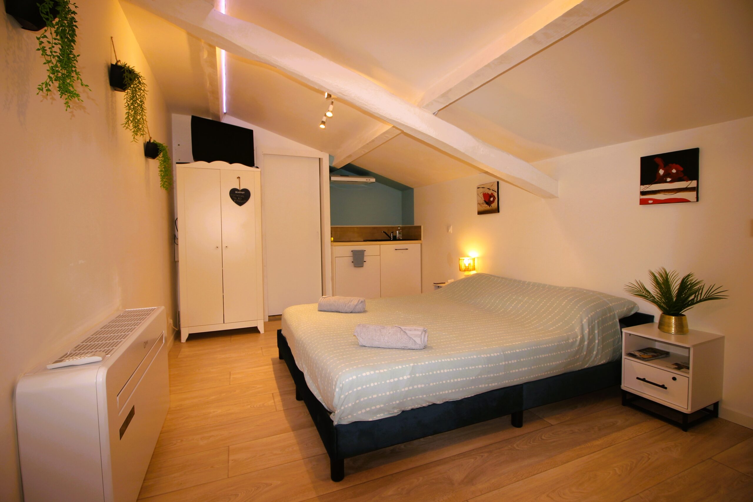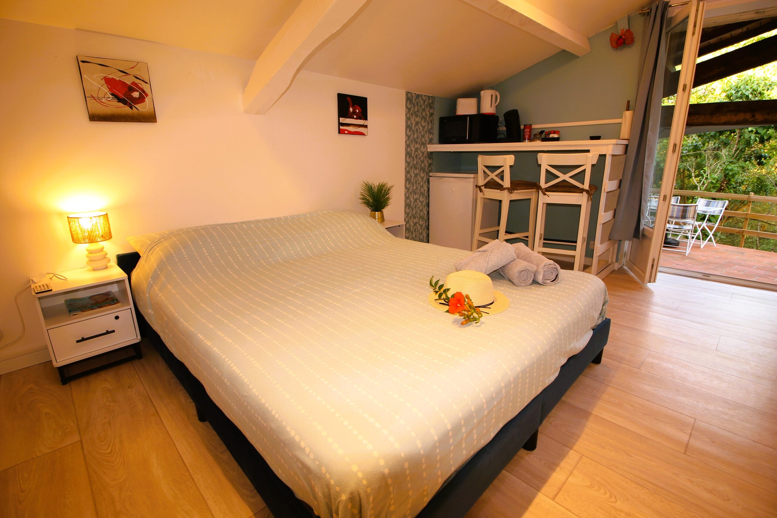 Charmant studio pour deux, niché au cœur de la nature. Entouré de verdure, il offre un cadre paisible idéal pour se ressourcer.